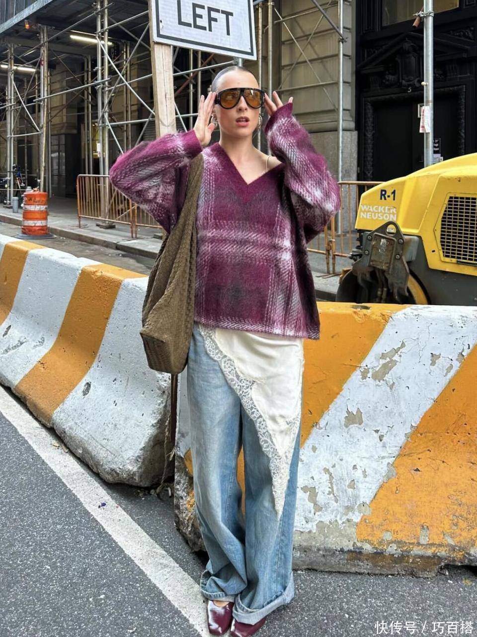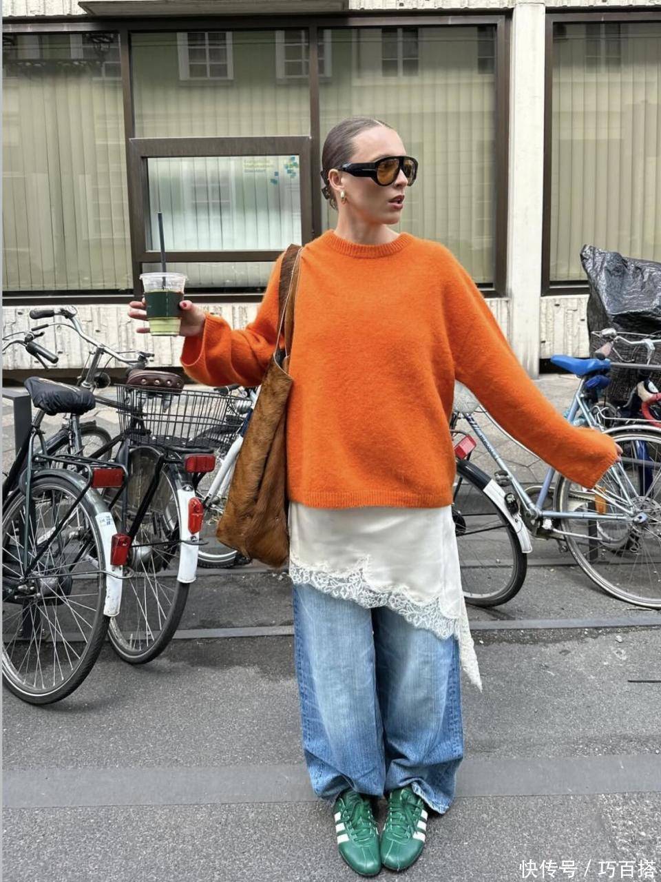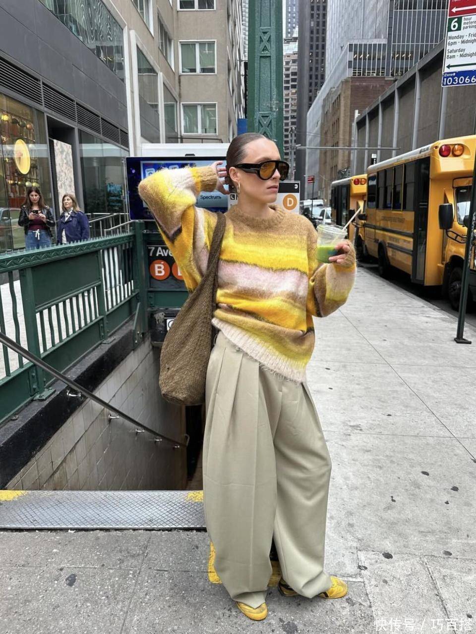 有所收敛的放松应对休闲场合、正式场合都OK,这里需要提醒大家一下的是,宽松毛衣自带慵懒松弛氛围,在下装的选择上尽量避开规规矩矩的直筒牛仔裙、毛呢裙,以及修身九分直筒牛仔裤。