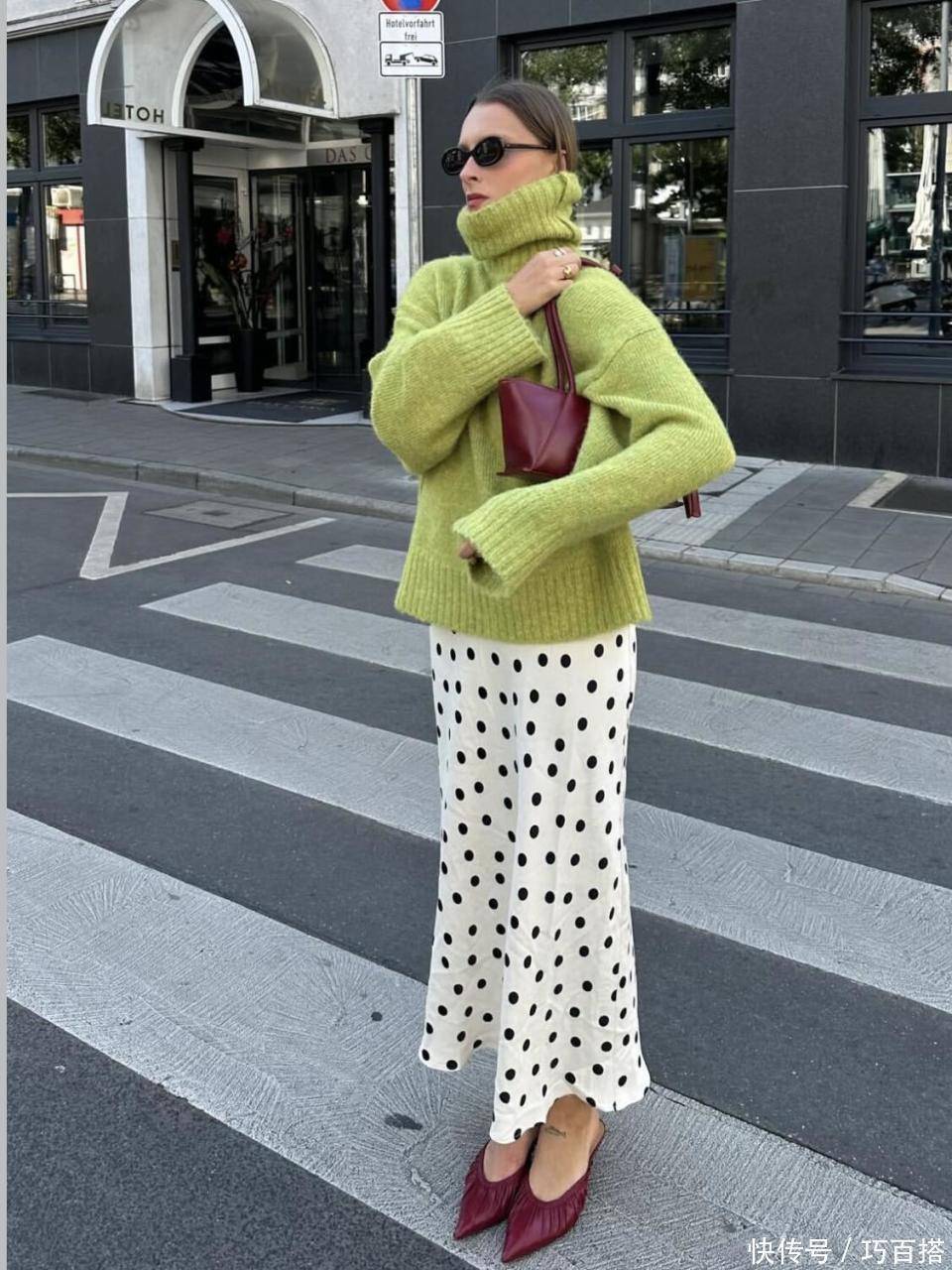 上下颜色相互衬托相互制约,既不会过分夸张也不会过于单调,比穿基础色毛衣的姐妹有存在感,但同时又比选择整套亮色的姐妹稳重耐看,日常外穿出门安全又保险,值得一试。